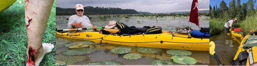 Upper Mississippi River... WHAT DA HELL!? I will never forgive Diane for tricking me into paddling this stream - barely a stream for the hundred miles. Nothing pretty, no current flow, no places to camp, no places to grab s burger, and no place that I'd want to return too. Okay... just the upper, upper sucks. At some point it does get better, and it got almost enjoyable. Then the flooding began. Then the flooding got worse. Then the flooding got worse. Then the flooding got worse. [Whats that musical sign that I was taught in the the 3rd grade - the one for 'repeat the last verse'? I could use it here. We actually escaped the rains, but it must have been upriver, downriver, and in between too cause there was plenty of water and no place to camp. Oh, did I menition the LEACHES? Did you know that Minnesota is the land of a thousand lakes - lakes full of leaches! A thousand lakes full of thousands upon thousands of BLOOD SUCKIN LEACHES! Do you remember the movie the African Queen? I found out that they didn't have to go to Afraca to film that seen where Borgort got covered in leaches - they came here to upper Minnisota! Saved a ton of money too.